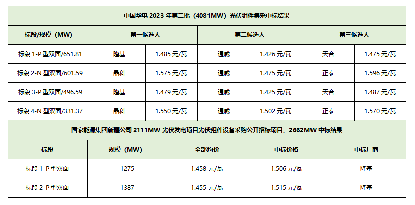 當項目落地不再受制于組件價格,終端發(fā)電企業(yè)將更關注資產安全伴生的穩(wěn)定收益,“低價”已不是它們關注的主要判斷因素。近期中國華電2023年4081MW光伏組件集采、國家能源集團新疆公司2111MW光伏發(fā)電項目組件設備采購招標結果印證了這種趨勢。