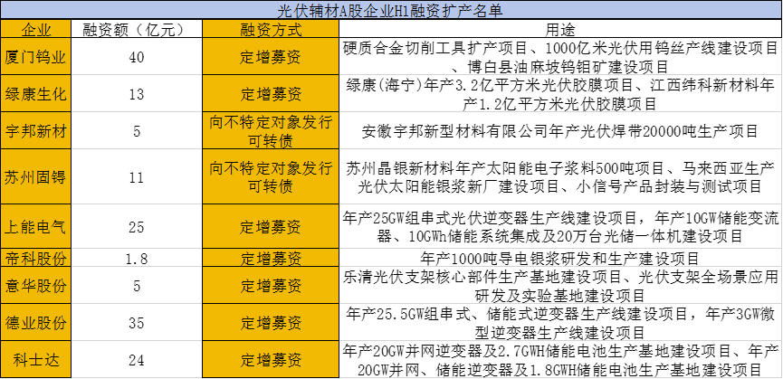 為了整軍備戰(zhàn),A股光伏企業(yè)選擇了繼續(xù)融資,據(jù)統(tǒng)計今年上半年超過四十相關家企業(yè)通過定增等渠道融資超1600億元。